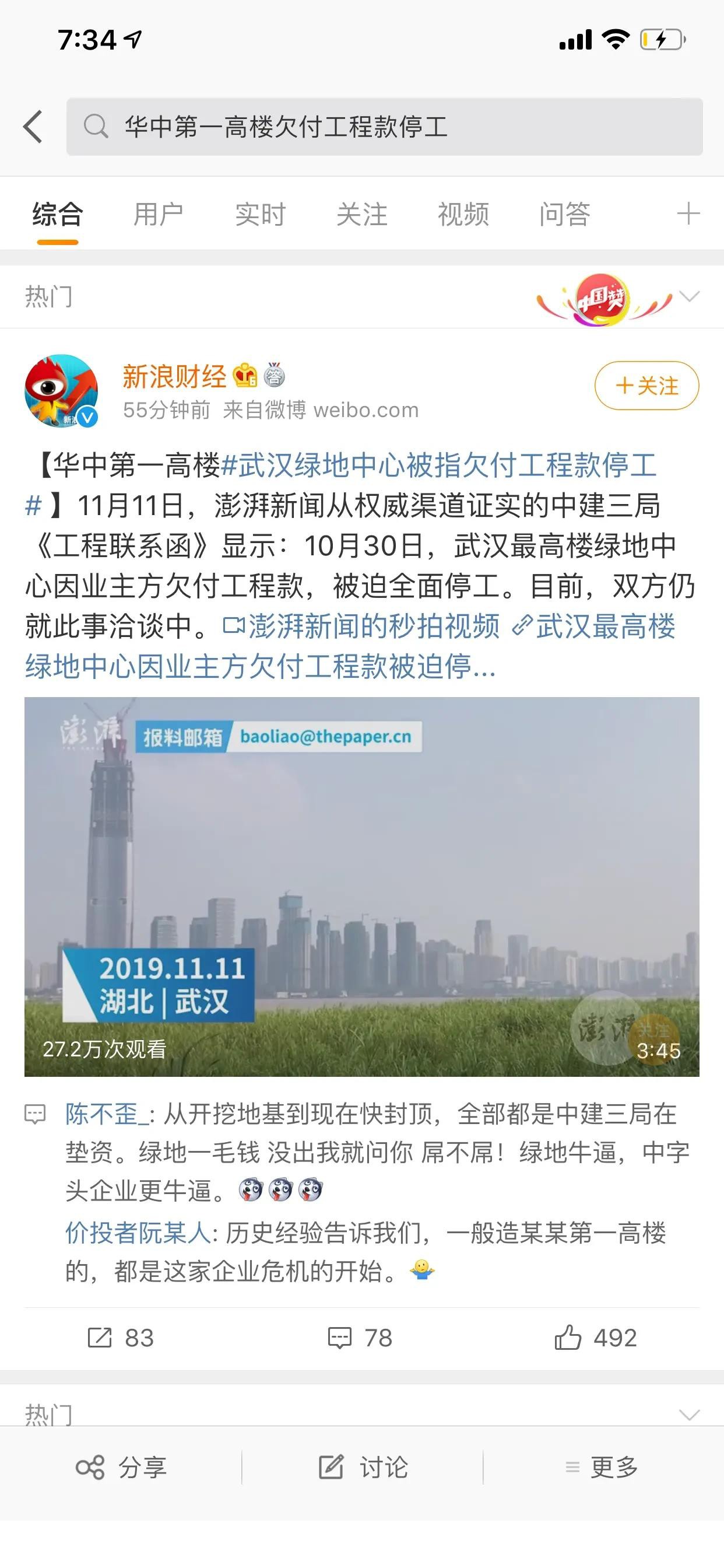 華中第一高樓武漢綠地中心,被指欠付工程款全面停工!