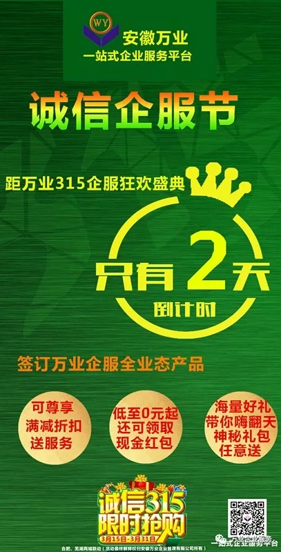 現(xiàn)為了響應(yīng)315誠信服務(wù)消費(fèi)者的號召,安徽萬業(yè)特推出315企服節(jié)盛典活動(dòng)。