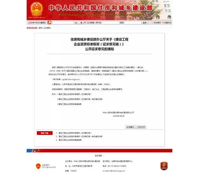2020年7月2日住建部公布企業(yè)資質(zhì)改革征求意見