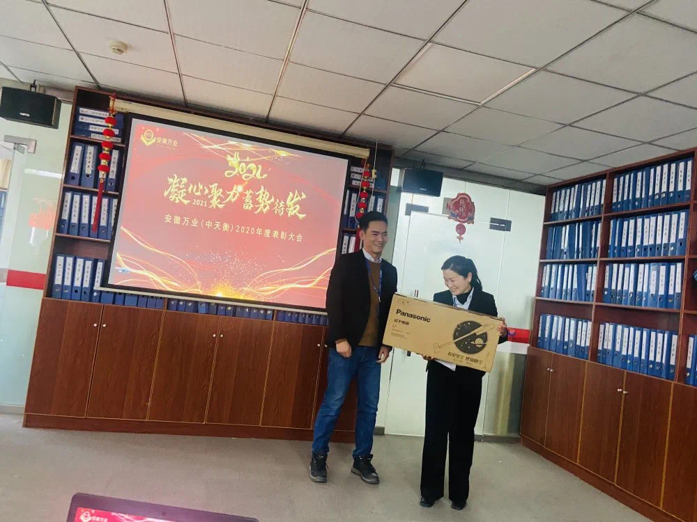 2月8號,安徽萬業(yè)(中天衡)在公司舉辦了2021年會盛典,并取得圓滿成功。我司黃總,中天衡王所參加此次活動并在會上致辭。 第一篇章 2020總結(jié)暨2021工作規(guī)劃 活動開始時,隨著黃總的登臺致辭,年會正式拉開了帷幕,首先黃總對公司2020年疫情之下逆勢而上取得的豐碩成果予以肯定,對長期以來支持萬業(yè)的合作伙伴、辛勤工作的全體員工,致以熱切的慰問和感謝并送上了新春的祝福。黃總表示公司將在2021年繼續(xù)加快企業(yè)多元化發(fā)展的步伐,為企業(yè)帶來新的發(fā)展契機(jī)。 隨后,各部門負(fù)責(zé)人開始了他們的年度匯報,總結(jié)2020年自己部門的不足與成果,暢談2021各團(tuán)隊目標(biāo)業(yè)績,發(fā)展使命。 第二篇章 表彰大會與年終獎頒發(fā) 接著,迎來了最令人激動人心的年終獎頒發(fā)環(huán)節(jié),在眾人期待的目光中,黃總向各位員工表現(xiàn)派發(fā)年終獎勵,這是企業(yè)對大家誠摯的祝福,也是對全體員工的工作成績的認(rèn)可。 第三篇章 抽獎 年終獎的頒發(fā),慷概激昂、振奮人心,全體員工歡聲笑語,為人們呈現(xiàn)出新春的活力與美好。同時,中間穿插的抽獎環(huán)節(jié)更是把年會晚宴的現(xiàn)場氣氛推向了最高潮,松下吸塵器、黛珂水乳套裝、三明治機(jī)等重磅好禮一一送出,激勵大家奮發(fā)向上。 律回春暉漸,萬象始更新